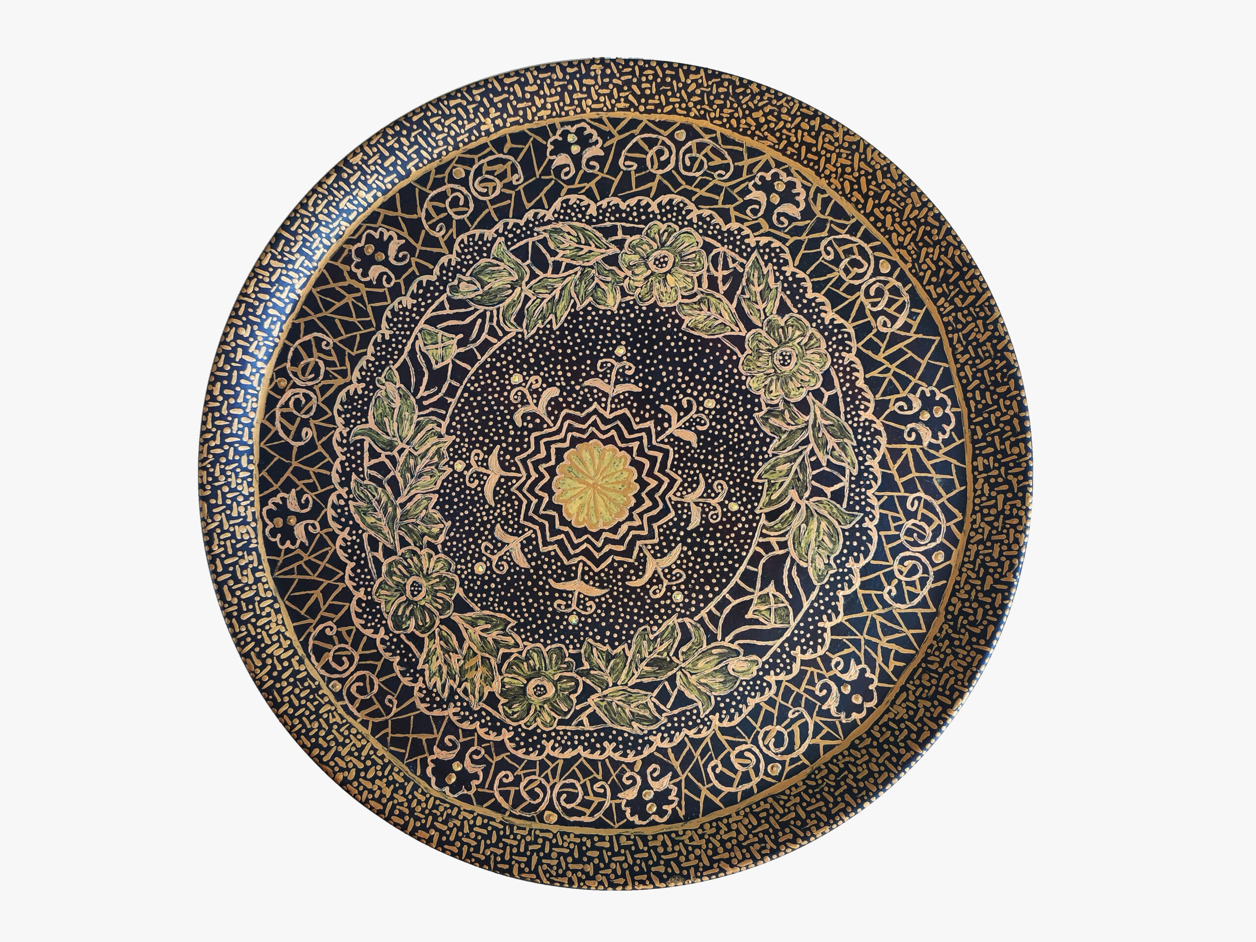 - Technique: Acrylic and ink on ceramic with precision linework and dotting