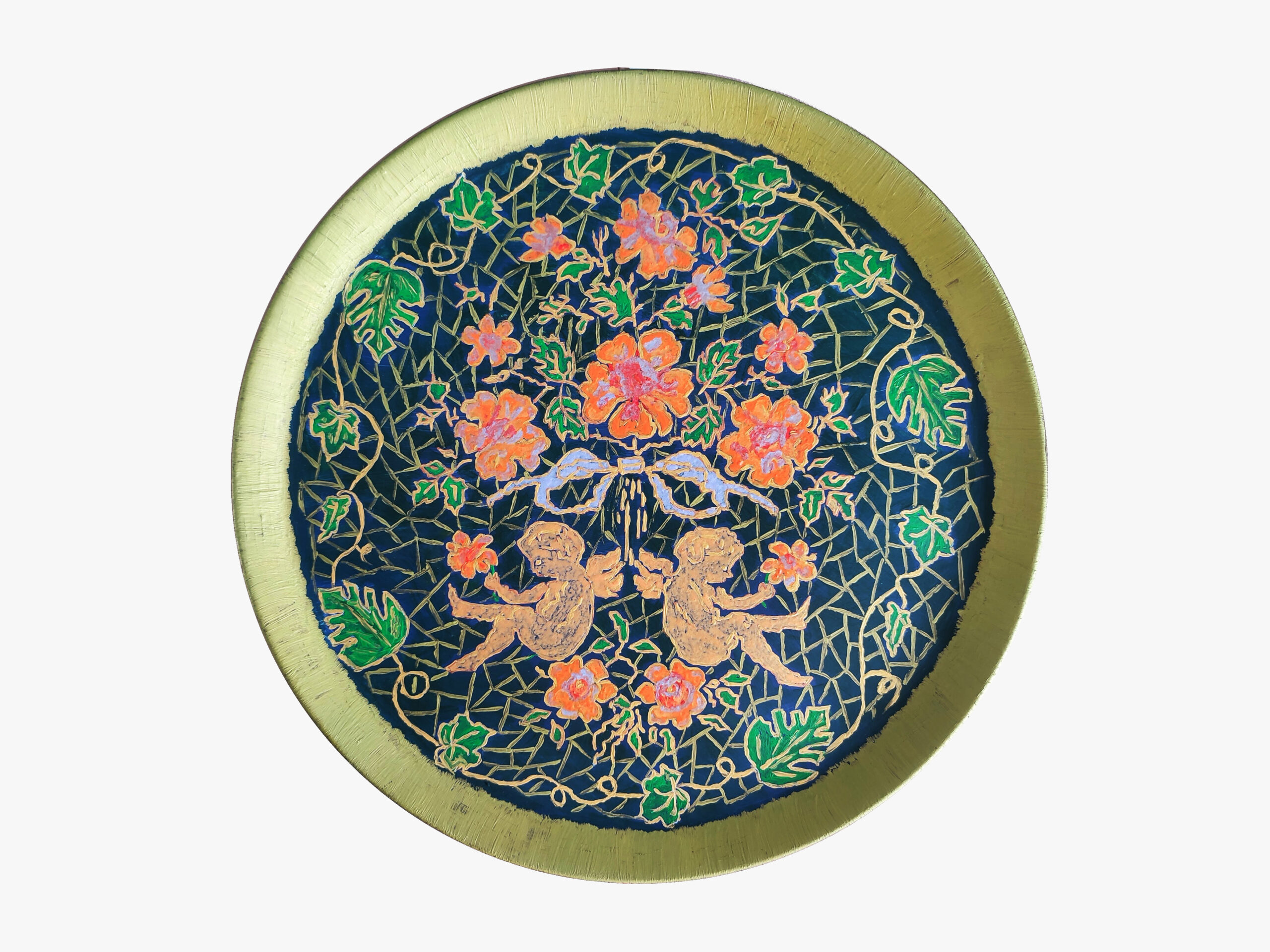 Introducing Vine of the Cherubim, a dazzling handpainted ceramic plate by Greek artist Anna Tsetsos, created as a joyful ode to love, light, and the playful divinity of nature. A lush convergence of myth, florals, and fine ornamentation, this piece reads like a fragment from a dream—a timeless memory passed down in color and gold.