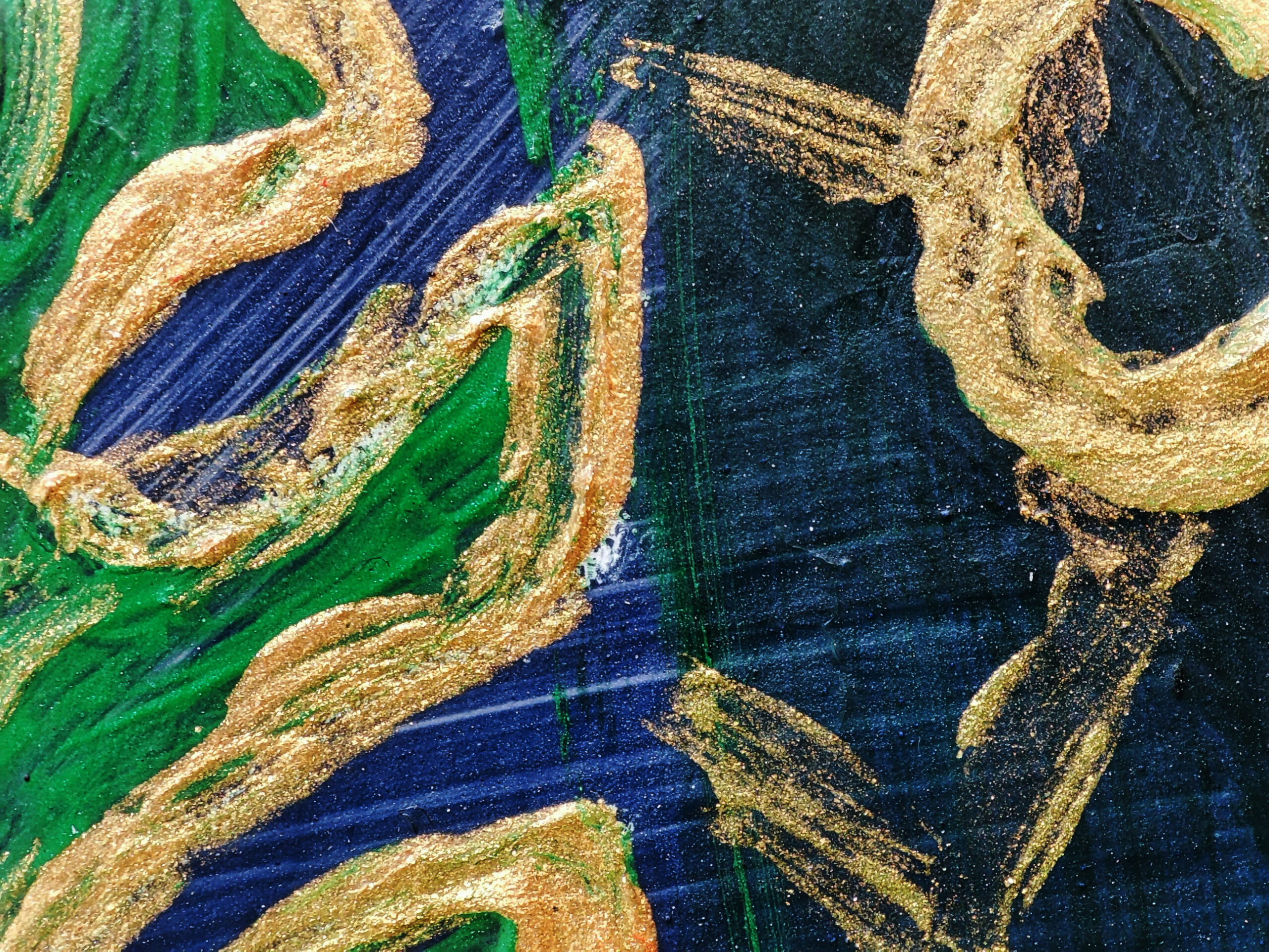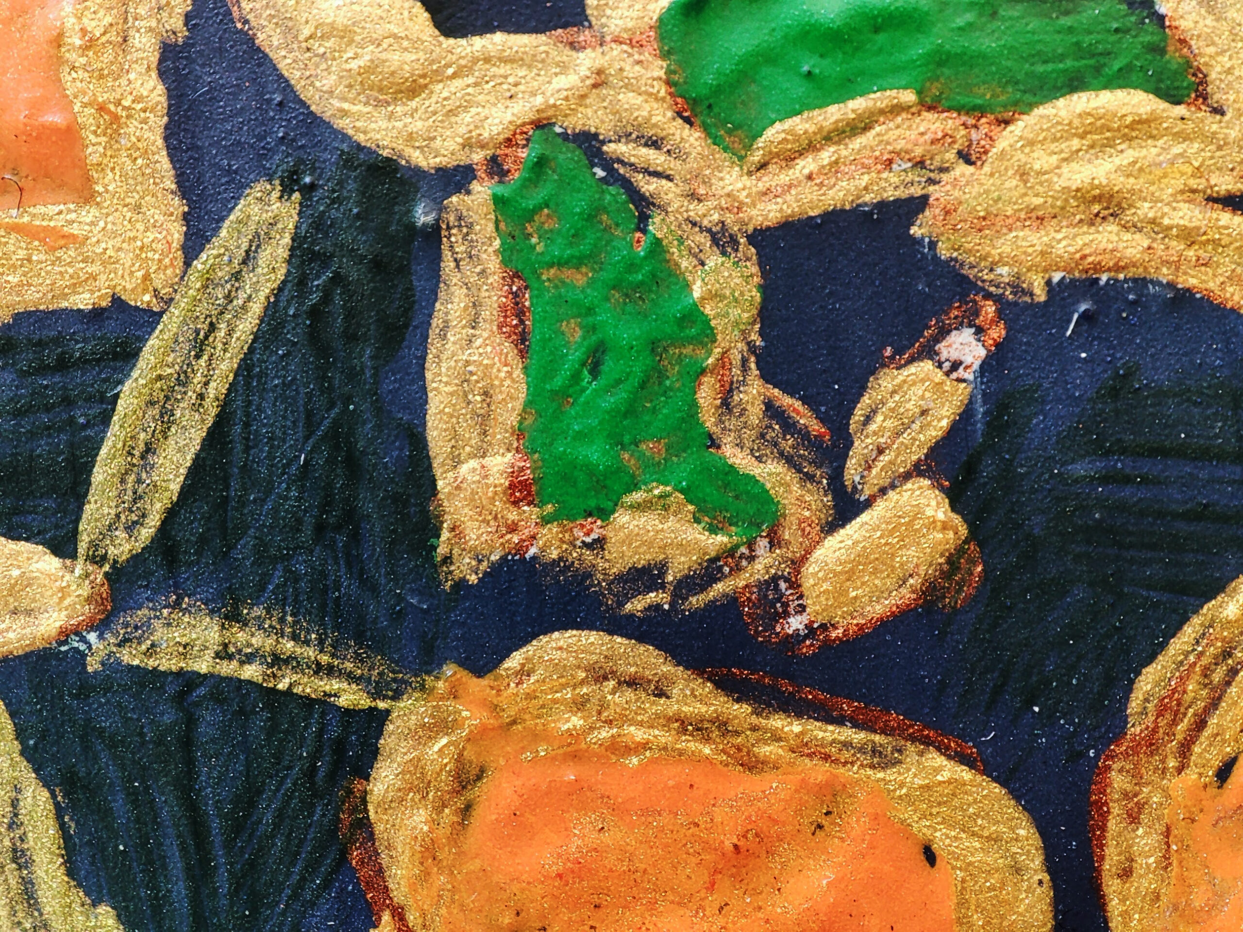 Guided by a reverence for storytelling, Anna’s work draws from Byzantine iconography, mosaic forms, and floral motifs found in ancient Greek textile patterns. Each piece is a meditation on color, form, and emotion—crafted not just to be seen, but to be felt. She describes her process as “painting with instinct, sculpting with memory.”