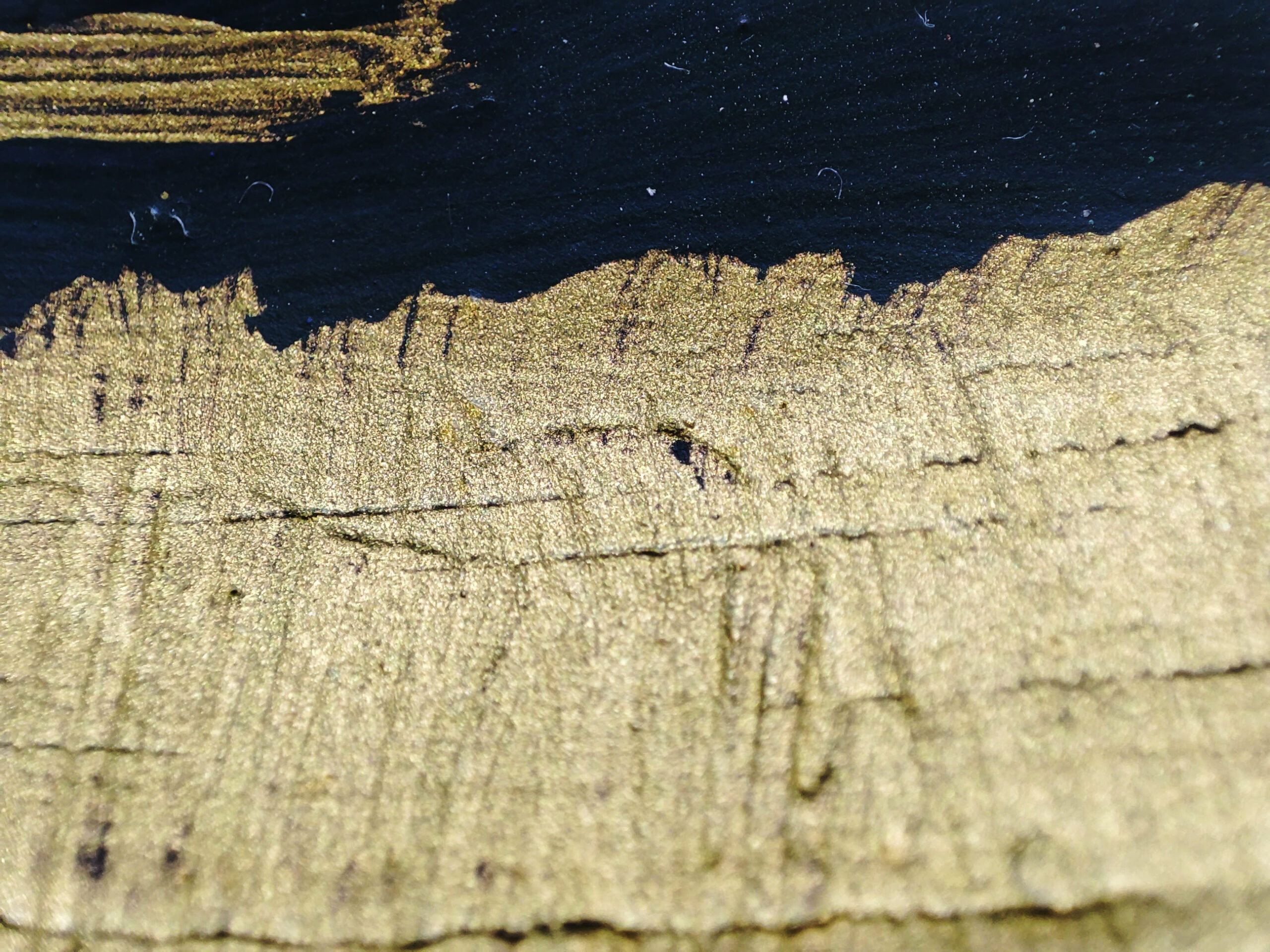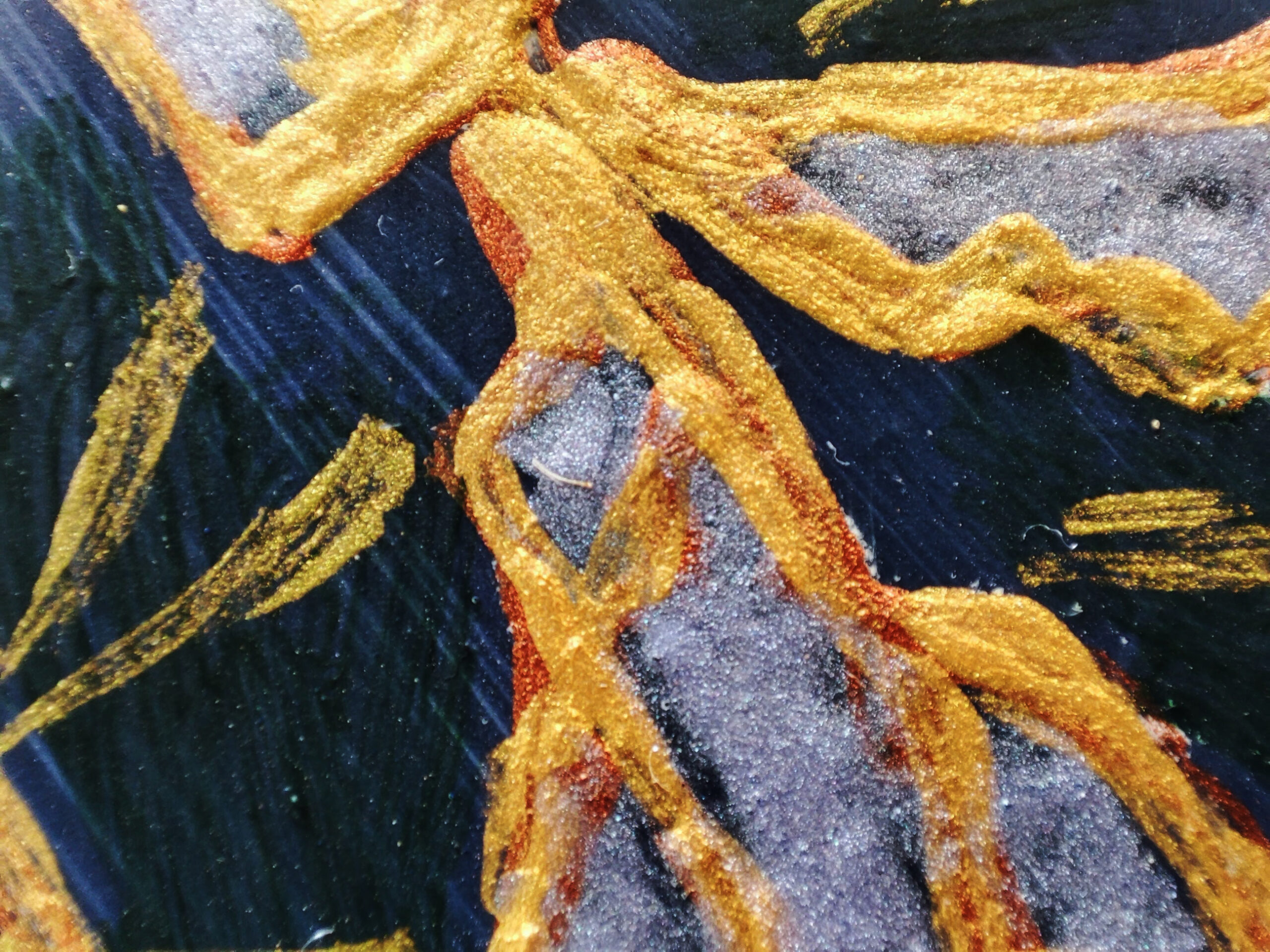 • Technique: Acrylic and ink on ceramic with metallic gold overlay and filigree detail
